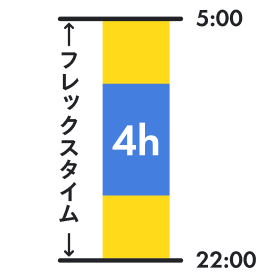 月内で労働時間に±20時間の幅を設け、各自で労働時間を調整することが可能です。